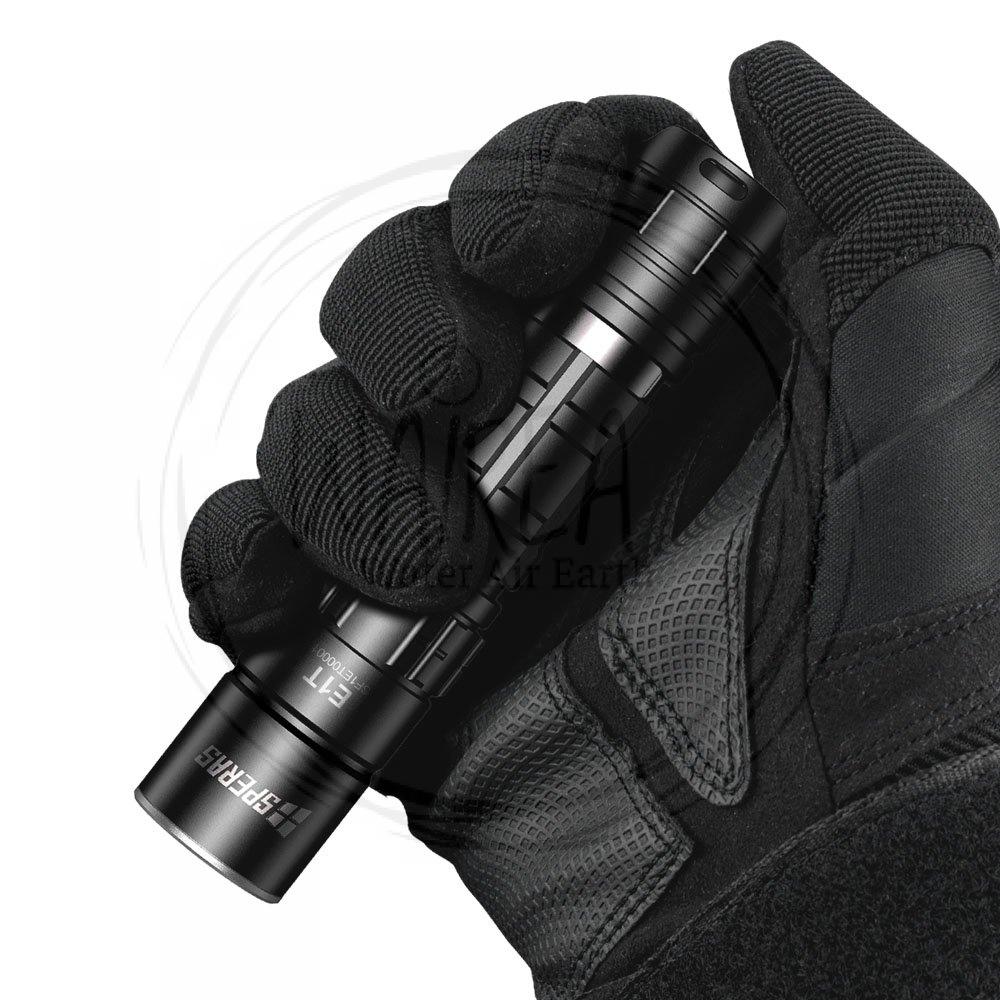 La Torcia militare E1T della SPERAS è una torcia a Led innovativa ad alta luminosità, realizzata in robusto alluminio aeronautico e con finitura anti abrasiva anodizzata di tipo III.