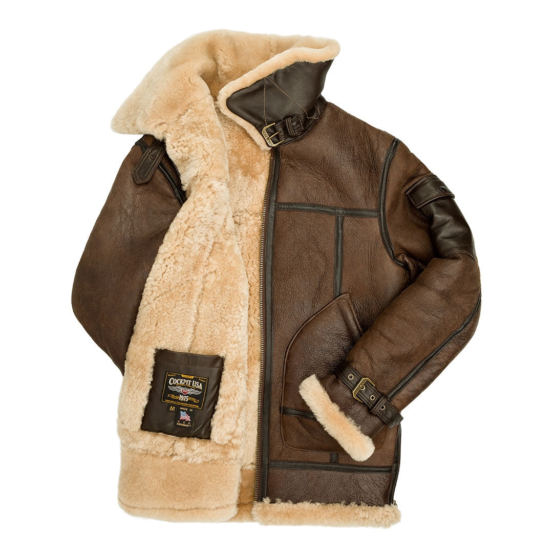 Cappotto delle Cockpit Usa in shearling da uomo ispirato all'equipaggiamento degli operatori dei primi bombardieri in uso nella seconda guerra mondiale negli anni '40 e '50 dall'aeronautica americana. Una nuova interpretazione di un concetto classico. Il confort di questo cappotto è evidente dal primo momento in cui lo si indossa.