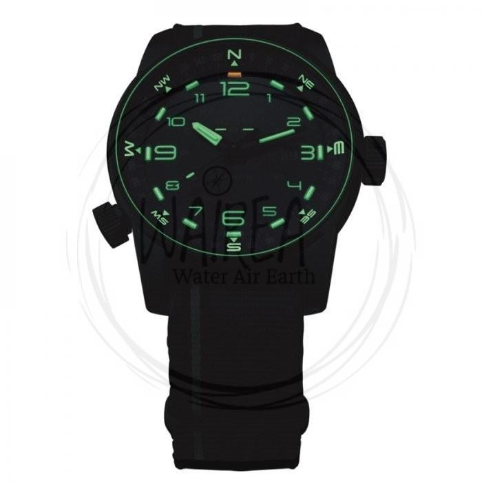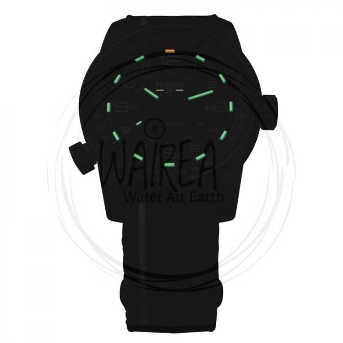 Orologio svizzero Traser H3 modello P68 Pathfinder Automatic: il segnatempo con bussola integrata. Per coloro che non hanno bisogno di indicazioni ma intraprendono incessantemente la propria strada. Il P68 Pathfinder Automatic affascina con le sue linee pulite. La cassa in pura ghisa annerita è impreziosita da dettagli raffinati: le superfici opache si alternano sapientemente a bordi levigati per aggiungere un tocco di sofisticata raffinatezza all’orologio. Uno sguardo all’interno della custodia rivela il segreto di P68 Pathfinder Automatic: un anello a bussola, che può essere azionato con una sola mano utilizzando la corona a ore 8. L’anello, usato in combinazione con la posizione del sole e la lancetta delle ore, rende facile l’impostazione della posizione individuale e delle indicazioni geografiche. Il display e i numeri sono semplici e puliti, consentendo quindi un’eccellente leggibilità delle informazioni. La luce è l’elemento principale di tutti i modelli. I tubi di illuminazione autoalimentati Trigalight® evidenziano i numeri di già marcati durante il giorno. Ulteriori inserti Trigalight® consentono la leggibilità anche in condizioni di luce sfavorevoli. 24/7. Senza fonte di energia esterna e con un’intensità praticamente invariata per almeno 10 anni. Quando arriva la notte, uno spettacolo unico di luce e colori inizia al polso. L’anello luminoso verde si irradia sul bordo superiore del case. Elementi Super-LumiNova sul quadrante e sull’anello della bussola. Quando questi sono completamente attenuati, il Trigalight® assume il ruolo di protagonista. Le valvole auto-attivate piene di tritio si trasformano nelle stelle più luminose del tuo polso e ti condurranno in sicurezza fino all’alba.