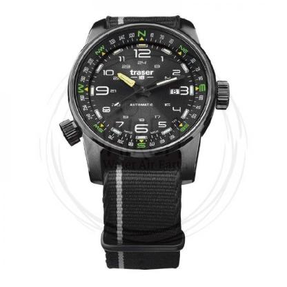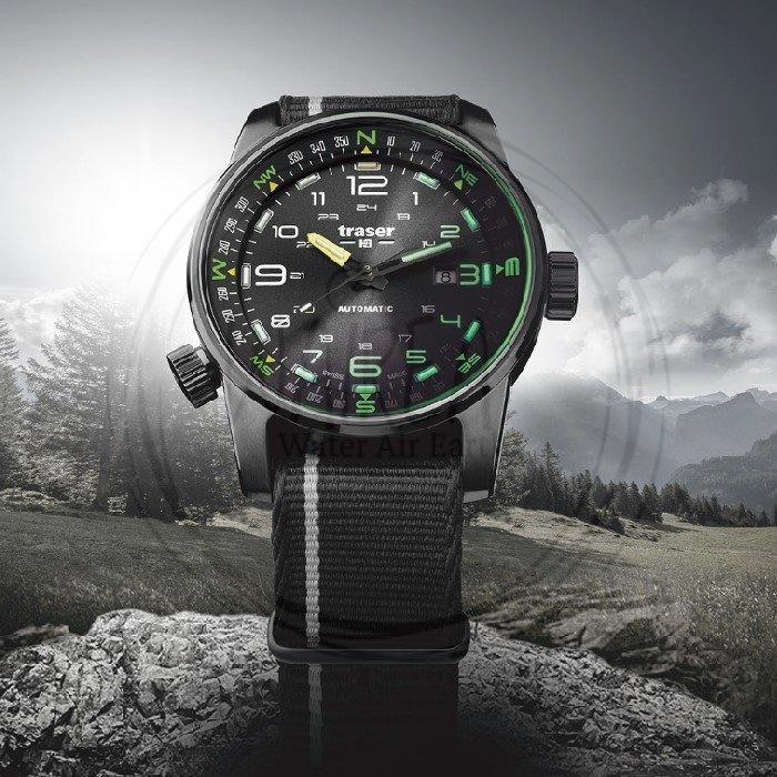 Orologio svizzero Traser H3 modello P68 Pathfinder Automatic: il segnatempo con bussola integrata. Per coloro che non hanno bisogno di indicazioni ma intraprendono incessantemente la propria strada. Il P68 Pathfinder Automatic affascina con le sue linee pulite. La cassa in pura ghisa annerita è impreziosita da dettagli raffinati: le superfici opache si alternano sapientemente a bordi levigati per aggiungere un tocco di sofisticata raffinatezza all’orologio. Uno sguardo all’interno della custodia rivela il segreto di P68 Pathfinder Automatic: un anello a bussola, che può essere azionato con una sola mano utilizzando la corona a ore 8. L’anello, usato in combinazione con la posizione del sole e la lancetta delle ore, rende facile l’impostazione della posizione individuale e delle indicazioni geografiche. Il display e i numeri sono semplici e puliti, consentendo quindi un’eccellente leggibilità delle informazioni. La luce è l’elemento principale di tutti i modelli. I tubi di illuminazione autoalimentati Trigalight® evidenziano i numeri di già marcati durante il giorno. Ulteriori inserti Trigalight® consentono la leggibilità anche in condizioni di luce sfavorevoli. 24/7. Senza fonte di energia esterna e con un’intensità praticamente invariata per almeno 10 anni. Quando arriva la notte, uno spettacolo unico di luce e colori inizia al polso. L’anello luminoso verde si irradia sul bordo superiore del case. Elementi Super-LumiNova sul quadrante e sull’anello della bussola. Quando questi sono completamente attenuati, il Trigalight® assume il ruolo di protagonista. Le valvole auto-attivate piene di tritio si trasformano nelle stelle più luminose del tuo polso e ti condurranno in sicurezza fino all’alba.