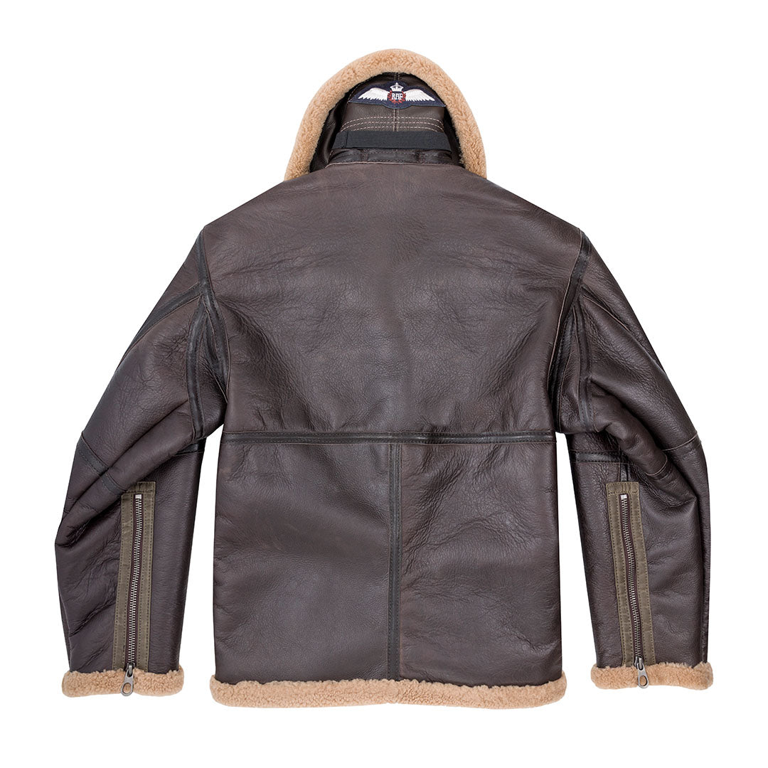 - Cintura sul colletto posteriore sotto la toppa RAF: Dettaglio caratteristico della giacca da aviatore.