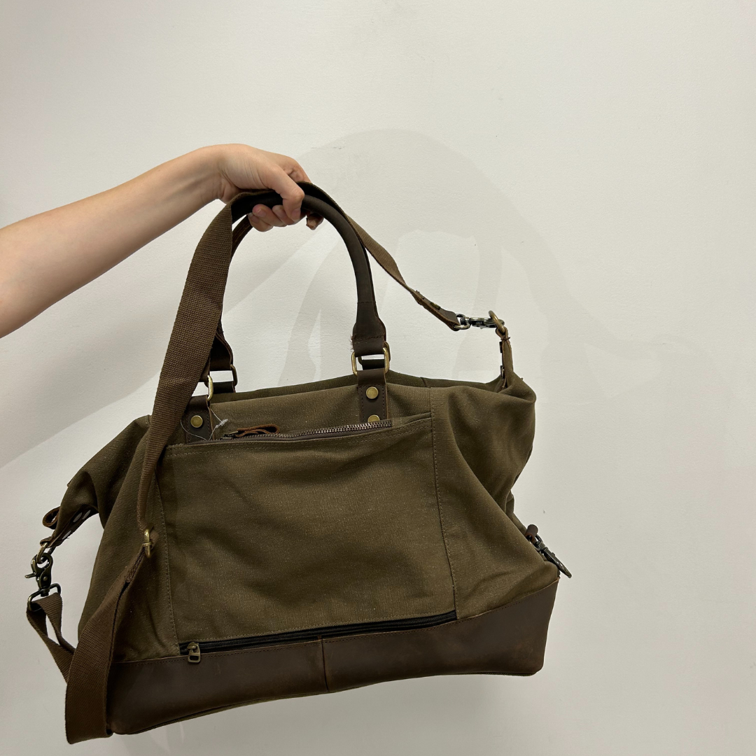 ottone e pelle. Questa borsona è perfetta per i viaggiatori che cercano stile, funzionalità e durata